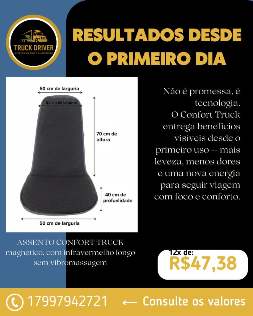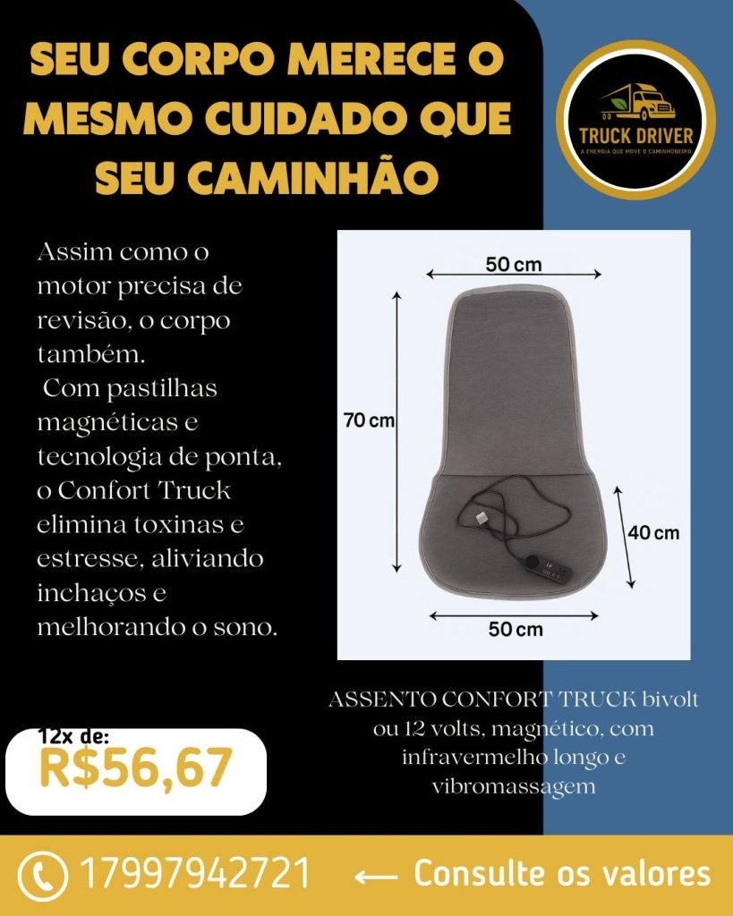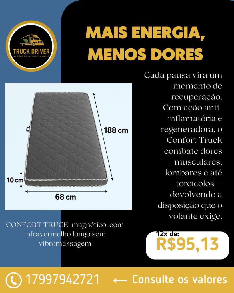 Todos eles integram infravermelho longo e pedras magnéticas, escolhidos pelas propriedades terapêuticas e de conforto que proporcionam aos músculos e à circulação. A versão com vibroterapia adiciona relaxamento extra, ideal para motoristas que buscam um descanso mais profundo.